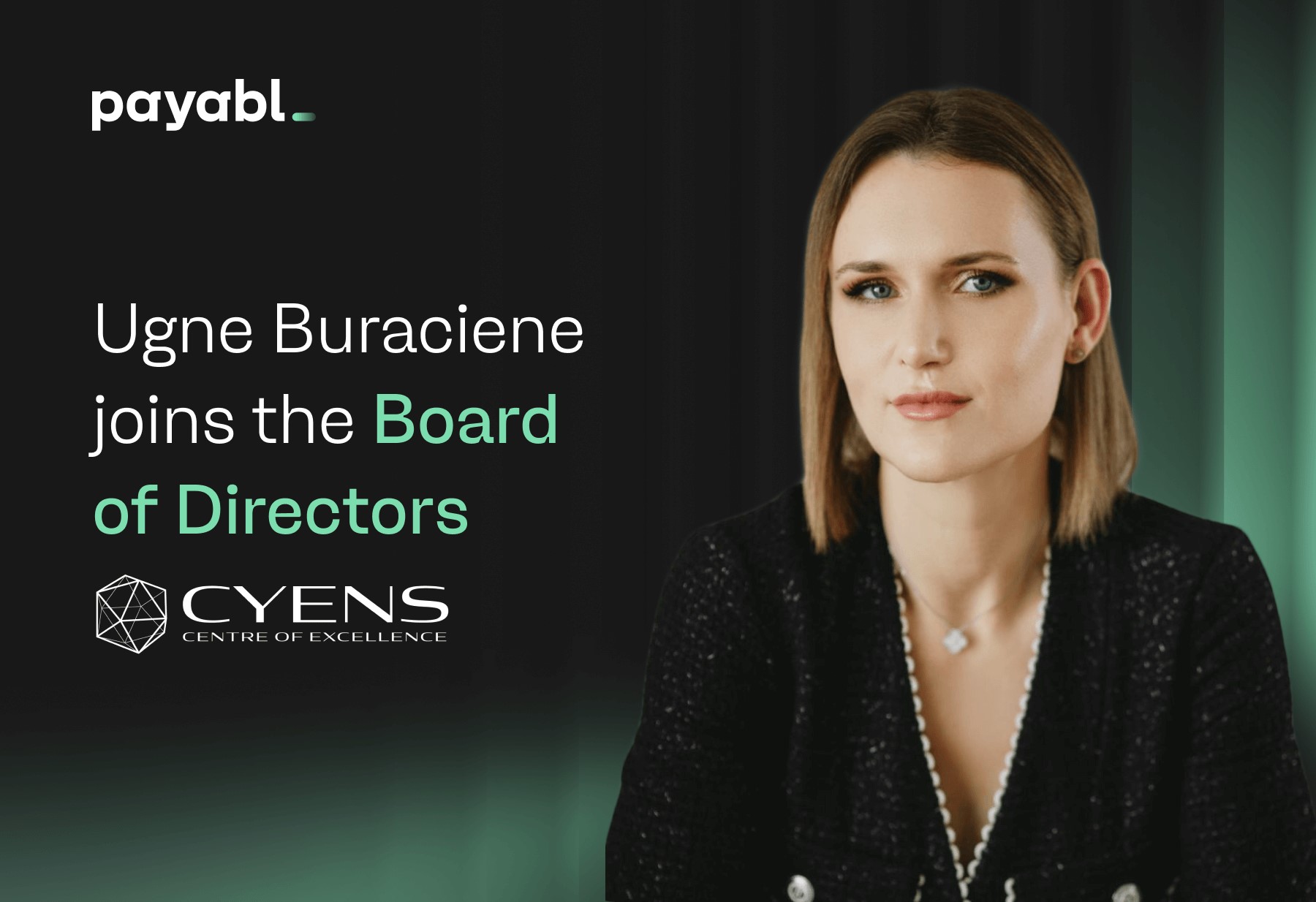 Η Ugne Buraciene, Group CEO της  payabl., διορίστηκε ως Μη Εκτελεστικό Μέλος στο Διοικητικό Συμβούλιο του Κέντρου Αριστείας CYENS, του κορυφαίου ερευνητικού οργανισμού της Κύπρου που δραστηριοποιείται στην Έρευνα και Καινοτομία Τεχνολογιών Πληροφορικής και Επικοινωνίας, με εξειδίκευση στους τομείς των Διαδραστικών Μέσων, Έξυπνων Συστημάτων και Αναδυόμενων Τεχνολογιών.