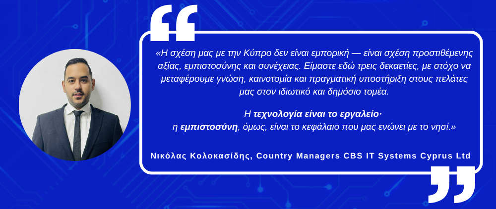 Η CBS IT Systems Cyprus Ltd συνεχίζει να αναπτύσσεται δυναμικά στην Κύπρο ως στρατηγικός τεχνολογικός συνεργάτης μακράς πνοής.