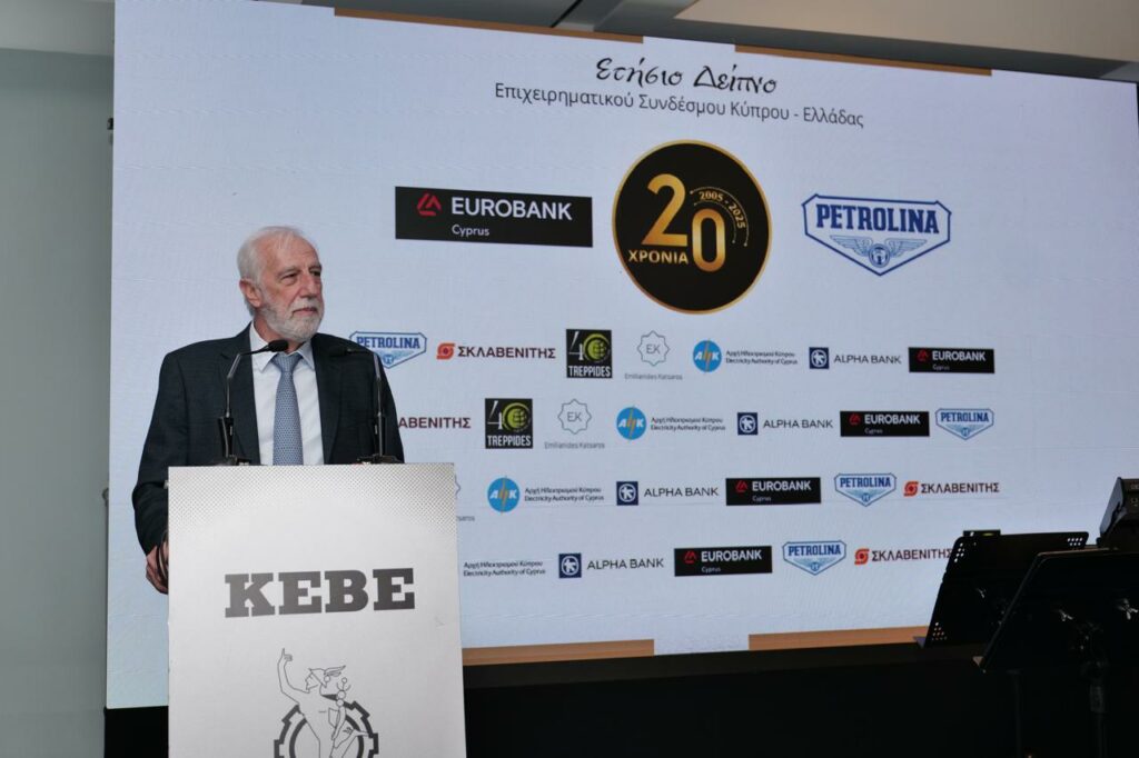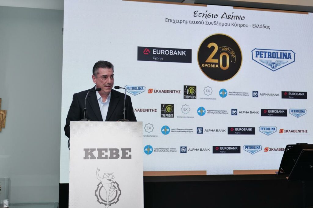 Σε χαιρετισμό του, ο Γενικός Γραμματέας του ΚΕΒΕ, κ. Φιλόκυπρος Ρουσουνίδης, εξήρε τον ρόλο του Συνδέσμου και παρουσίασε νέους τομείς όπου η Κύπρος και η Ελλάδα μπορούν να αναπτύξουν συνεργασίες.