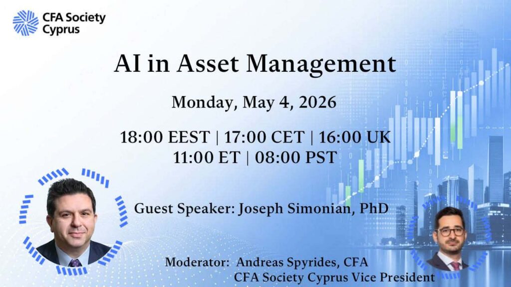 Αυτή είναι η συζήτηση που ο Σύνδεσμος Χρηματοοικονομικών Αναλυτών Κύπρου – CFA Society Cyprus φέρνει στην κοινότητά του στο webinar με τίτλο “AI in Asset Management”, που θα πραγματοποιηθεί στις 4 Μαΐου 2026 στις 18:00 EEST.