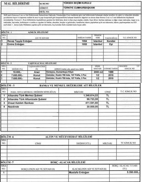 Η απόφαση περιελάμβανε επίσης τη δήλωση περιουσίας από τον πρόεδρο της Τουρκίας Ρετζέπ Ταγίπ Ερντογάν και τη σύζυγό του Εμινέ Ερντογάν.