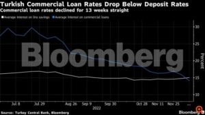 Το κόστος των εμπορικών δανείων στην Τουρκία υποχώρησε κάτω από τα επιτόκια καταθέσεων σε λίρες για πρώτη φορά από το 2019, όπως μεταδίδει το πρακτορείο...