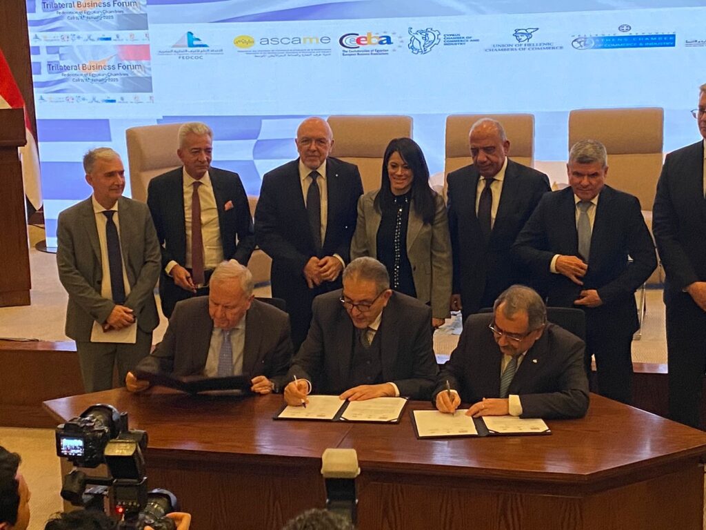Με επιτυχία ολοκληρώθηκε χθες, 8 Ιανουαρίου, στο Κάιρο, η τριμερής επιχειρηματική διάσκεψη που πραγματοποιήθηκε παράλληλα με τη Σύνοδο Κορυφής των Αρχηγών Κρατών της Κύπρου, της Ελλάδας και της Αιγύπτου. Η διάσκεψη ανέδειξε τη δυναμική των οικονομικών σχέσεων των τριών χωρών και το κοινό όραμα για ενίσχυση της περιφερειακής συνεργασίας.