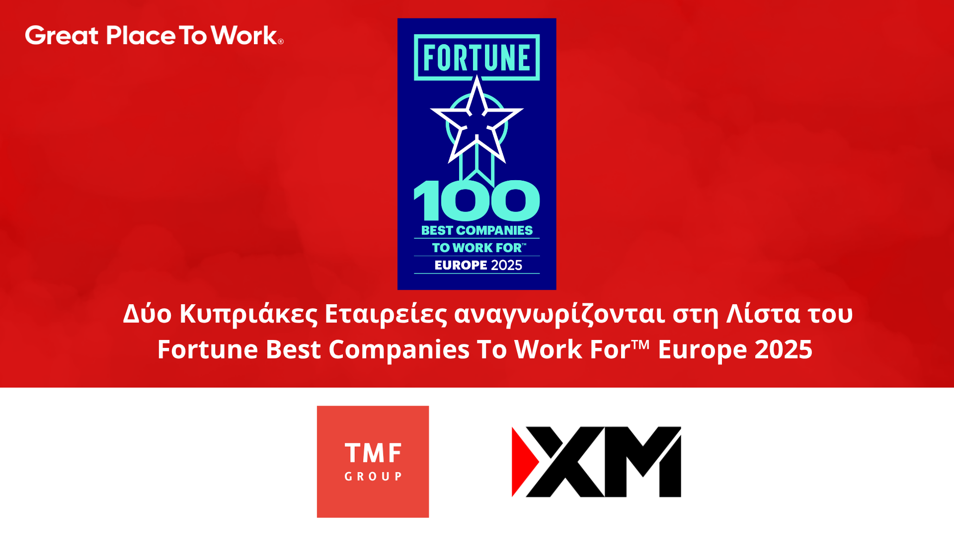 Το Great Place To Work® ανακοίνωσε τη λίστα Fortune 100 Best Companies to Work For™ Europe 2025, σηματοδοτώντας τη δεύτερη χρονιά συνεργασίας του με το Fortune Europe. Η φετινή λίστα αναδεικνύει τις εταιρείες όπου οι εργαζόμενοι βιώνουν τα υψηλότερα επίπεδα εμπιστοσύνης και θετικών εμπειριών στον χώρο εργασίας.