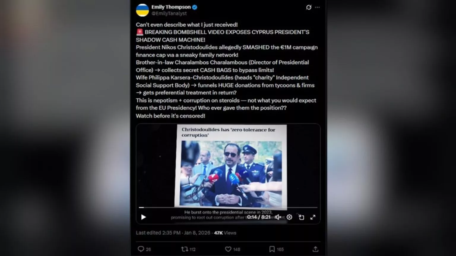Εκφωνώντας το λόγο στο μνημόσυνο του Μιχάλη Ολύμπιου, αγωνιστή της ΕΟΚΑ, ο οποίος απεβίωσε το 1969 δήλωσε ότι δεν συμβιβαζόμαστε με την κατοχή. «Σε τούτες τις δύσκολες ώρες, και έχοντας να αντιμετωπίσουμε πολλαπλές προκλήσεις, εκείνο που απαιτείται, εκείνο που αναμένει από όλους μας ο κυπριακός λαός, είναι σύνεση, ομοψυχία και αποφασιστικότητα», ανέφερε ο Πρόεδρος, σύμφωνα με ανακοίνωση της Προεδρίας. Μόνο έτσι, συνέχισε, «μπορούμε να καταφέρουμε να ανταποκριθούμε στις πολυεπίπεδες προκλήσεις των καιρών και να αγωνιστούμε, κάνοντας ό,τι είναι δυνατόν από δικής μας πλευράς για να πετύχουμε και την απελευθέρωση της πατρίδας μας, την απαλλαγή της από την τουρκική κατοχή και την επανένωση του τόπου μας».