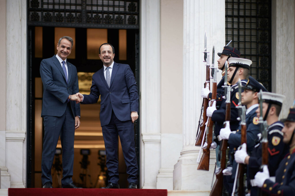 Η συμπόρευση Αθήνας και Λευκωσίας αποτυπώνεται με απόλυτη σαφήνεια και στο Κοινό Ανακοινωθέν για το Κυπριακό, η επίλυση του οποίου αποτελεί σταθερή εθνική προτεραιότητα.