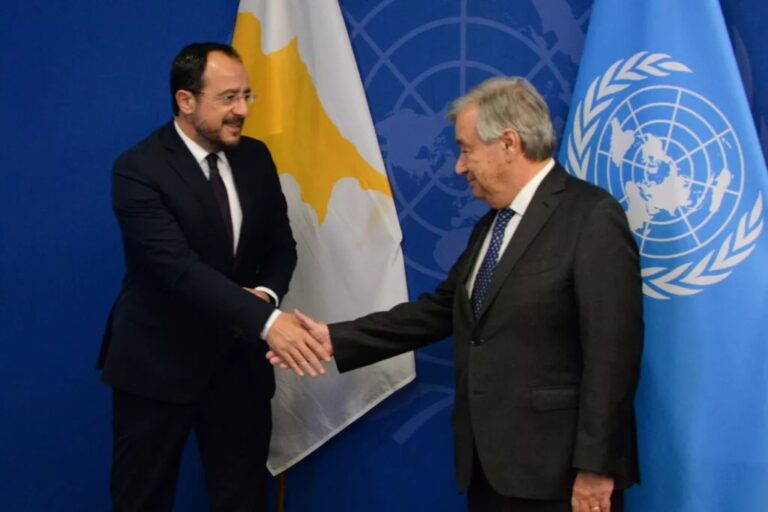 «Ο Πρόεδρος της Δημοκρατίας κ. Νίκος Χριστοδουλίδης και ο Πρωθυπουργός της Ελληνικής Δημοκρατίας κ. Κυριάκος Μητσοτάκης πραγματοποίησαν συνάντηση στο πλαίσιο της 80ής Γενικής Συνέλευσης του Οργανισμού Ηνωμένων Εθνών (ΟΗΕ).
