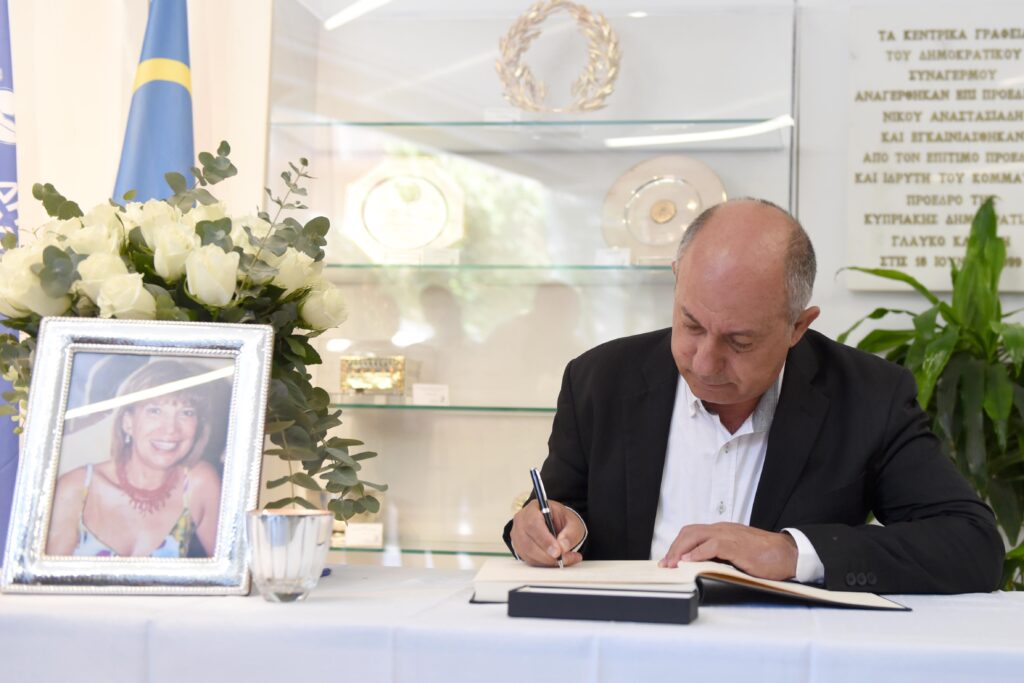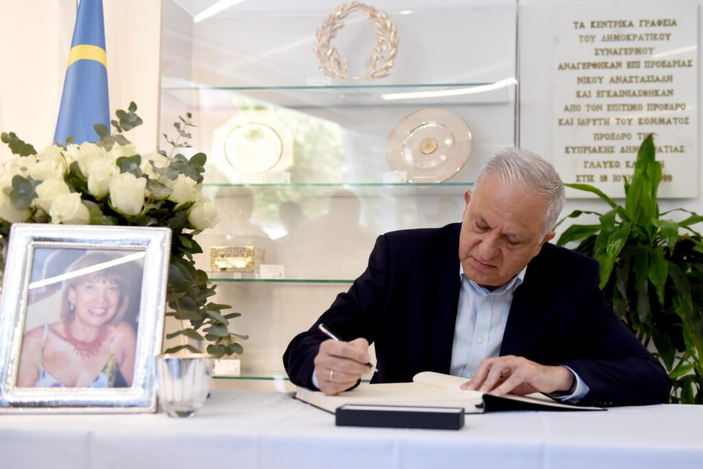 Το βιβλίο συλλυπητηρίων στα κεντρικά γραφεία του Δημοκρατικού Συναγερμού θα παραμείνει ανοικτό έως τις 17:00, καθώς και ηλεκτρονικά στη διεύθυνση: https://clerides.cy/katieclerides/