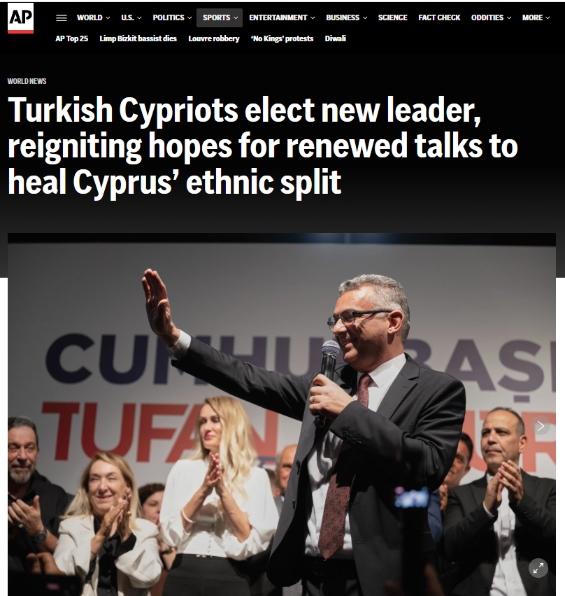 Associated Press – «Οι Τουρκοκύπριοι εκλέγουν νέο ηγέτη, αναζωπυρώνοντας τις ελπίδες για επανέναρξη συνομιλιών με στόχο την άρση της διαίρεσης της Κύπρου»