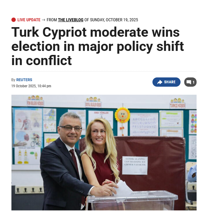 Politico – «Οι Τουρκοκύπριοι εκλέγουν μετριοπαθή ηγέτη σε μια κρίσιμη αλλαγή πολιτικής»