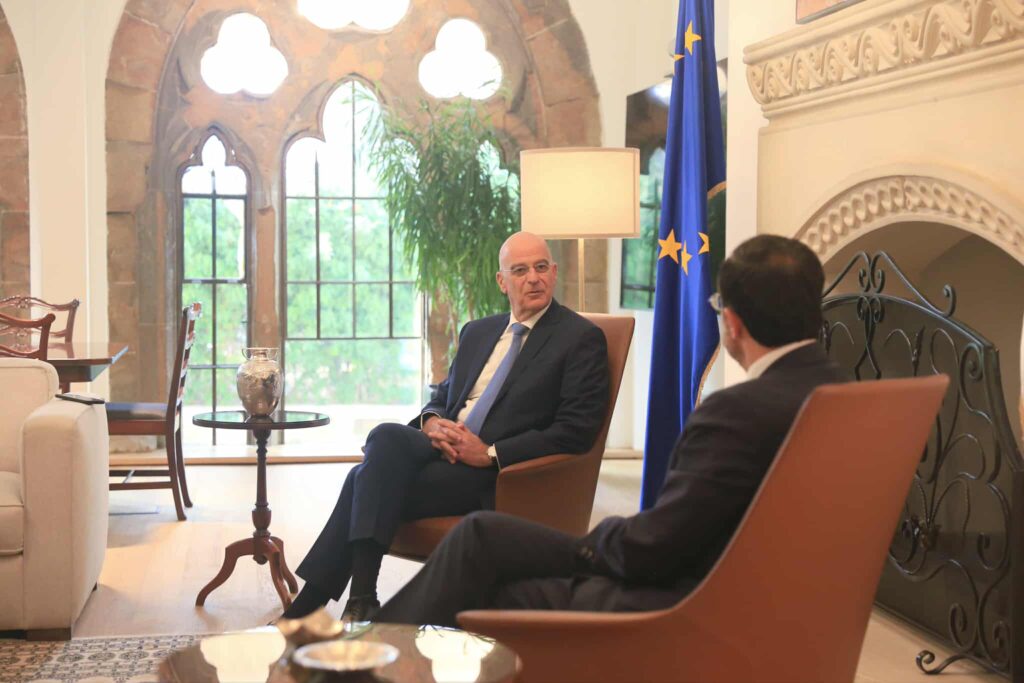Από την πλευρά του, ο Νίκος Δένδιας ευχαρίστησε τον Βασίλη Πάλμα για την υποδοχή, αλλά και τον Πρόεδρο της Δημοκρατίας, Νίκο Χριστοδουλίδη, τον οποίο συναντούσε στη συνέχεια.
