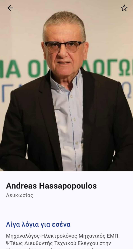 Στην πλατφόρμα του κόμματος του Φειδία Παναγιώτου «Άμεση Δημοκρατία», προς ψήφιση έθεσε τον εαυτό του ο Ανδρέας Χασαπόπουλος.