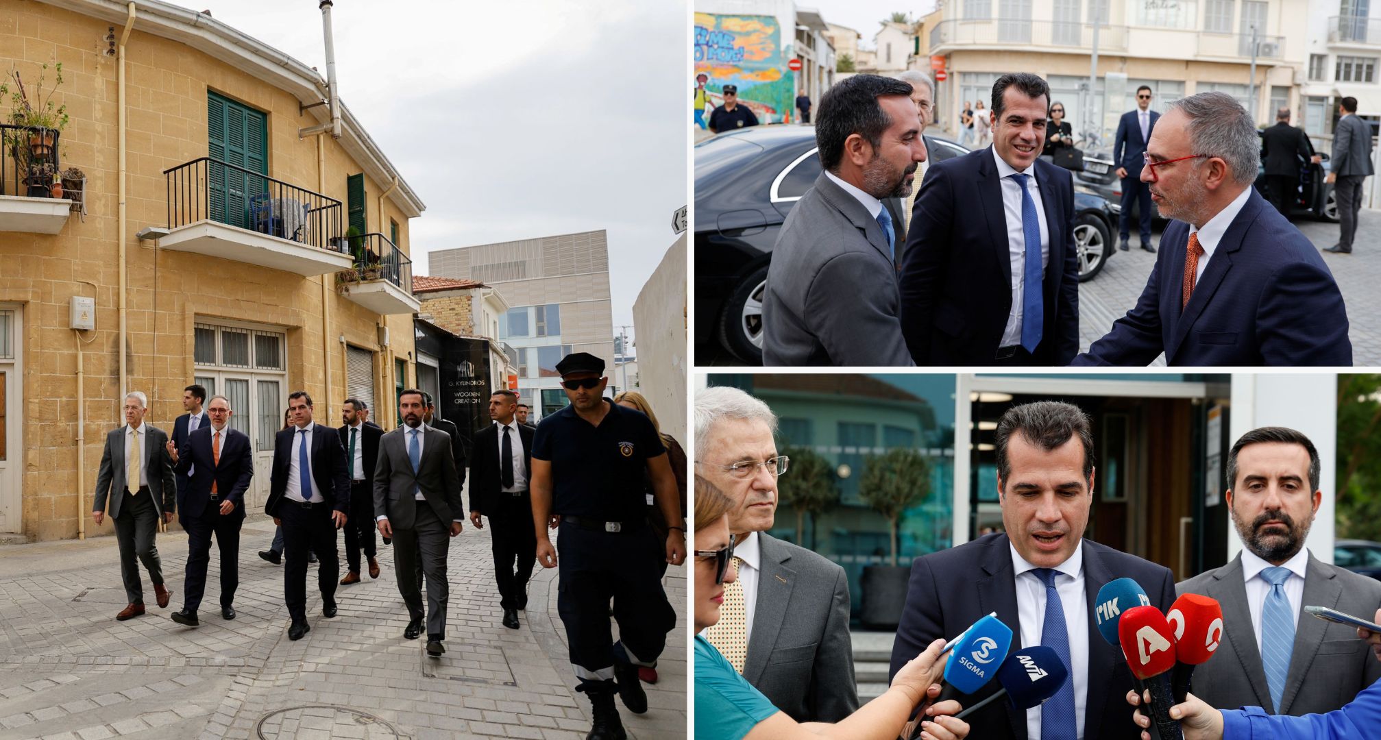 «Με μεγάλη χαρά σήμερα επισκέπτομαι την Κύπρο, επισκέπτομαι την Λευκωσία», είπε ο κ. Πλεύρης σε δηλώσεις του μετά την περιήγηση.