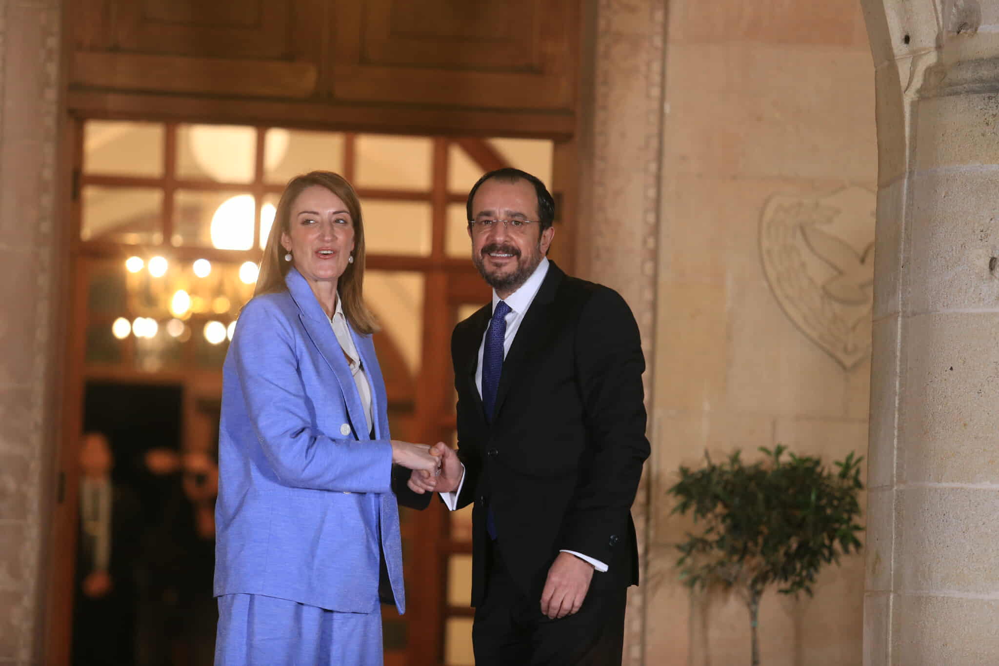 Από την πλευρά της, η κ. Μέτσολα είπε ότι είναι χαρά και τιμή της να βρίσκεται και πάλι στην Κύπρο, αυτή τη φορά συνοδευόμενη από τη Διάσκεψη των Προέδρων του ΕΚ, η οποία συγκεντρώνει όλους τους ηγέτες των πολιτικών ομάδων.