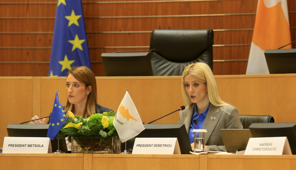 Ευγνωμοσύνη για το συνεχές ενδιαφέρον της για το Κυπριακό εξέφρασε προς την Πρόεδρο του Ευρωπαϊκού Κοινοβουλίου, Ρομπέρτα Μέτσολα, η Πρόεδρος της Βουλής, Αννίτα Δημητρίου, σε κατ’ ιδίαν συνάντηση που είχαν το πρωί της Τρίτης στη Βουλή.