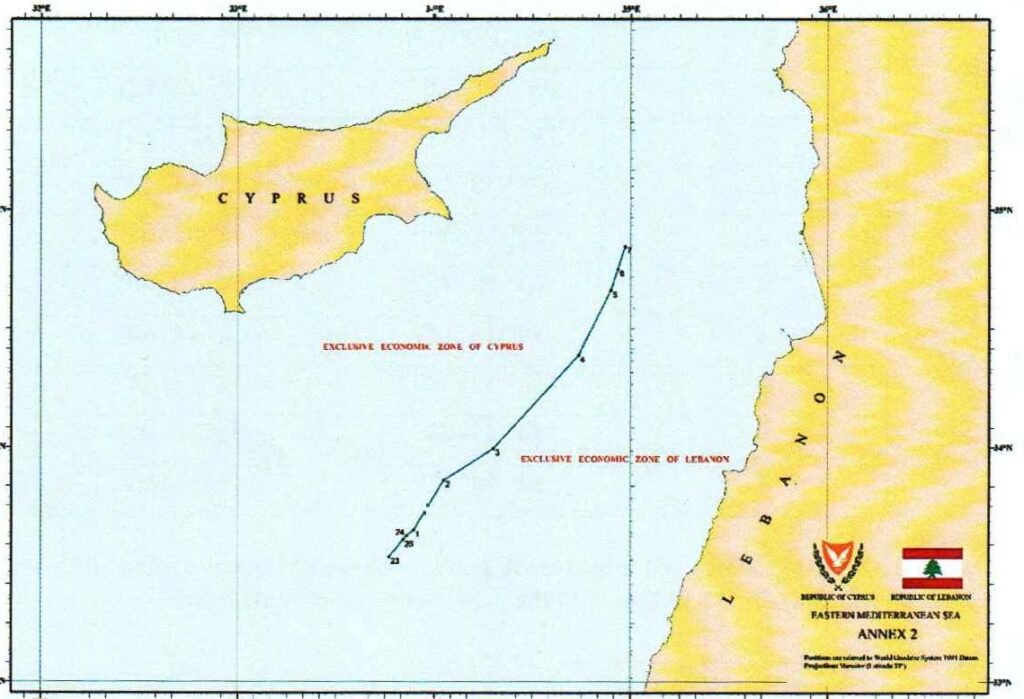Το διάγραμμα που απεικονίζει τη μέση γραμμή για ενδεικτικούς σκοπούς μόνο, το οποίο προσαρτάται στη Συμφωνία μεταξύ της Κυπριακής Δημοκρατίας και της Δημοκρατίας του Λιβάνου για την οριοθέτηση της Αποκλειστικής Οικονομικής Ζώνης.
