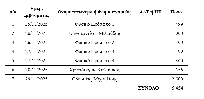 Το Κίνημα Άλμα ανακοίνωσε τις οικονομικές εισφορές που έλαβε από τις 15 Οκτωβρίου έως τις 30 Νοεμβρίου 2025, στο πλαίσιο της δέσμευσης του για πλήρη διαφάνεια και αυστηρή τήρηση του καταστατικού του.