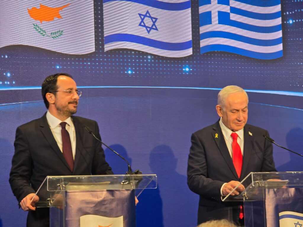 Δεν υπάρχουν όρια σε ό,τι αφορά τις προοπτικές συνεργασίας ανάμεσα σε Κύπρο-Ελλάδα – Ισραήλ, είπε σήμερα, ο Πρόεδρος της Δημοκρατίας Νίκος Χριστοδουλίδης, ο οποίος είχε το απόγευμα τριμερή κατ΄ιδίαν συνάντηση με τον Πρωθυπουργό του Ισραήλ Βενιαμίν Νετανιάχου και τον Πρωθυπουργό της Ελλάδας Κυριάκο Μητσοτάκη, στο πλαίσιο της Τριμερούς Συνόδου Κορυφής, που πραγματοποιείται στην Ιερουσαλήμ.