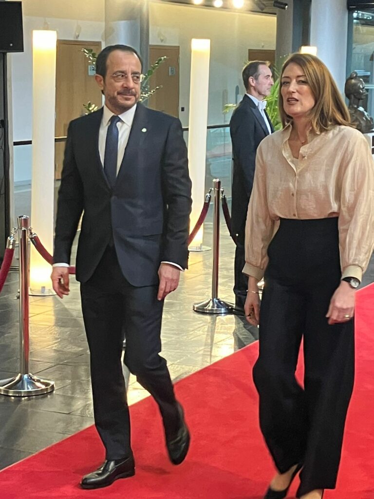 Απευθυνόμενη στον Πρόεδρο της Κύπρου, η κ. Μέτσολα, με καταγωγή από τη Μάλτα, είπε «από ένα περήφανο παιδί της Μεσογείου προς ένα άλλο, γνωρίζω ότι η Κύπρος βρίσκεται σε καλή θέση για να μας οδηγήσει μπροστά. Βοηθάτε στη σύνδεση της Ευρώπης με τον κόσμο, κατανοείτε από πρώτο χέρι πολλές από τις προκλήσεις που αντιμετωπίζουμε σήμερα και ξέρετε πώς να φέρνετε τους ανθρώπους κοντά για να οικοδομήσουν τις λύσεις που χρειάζεται η Ευρώπη».