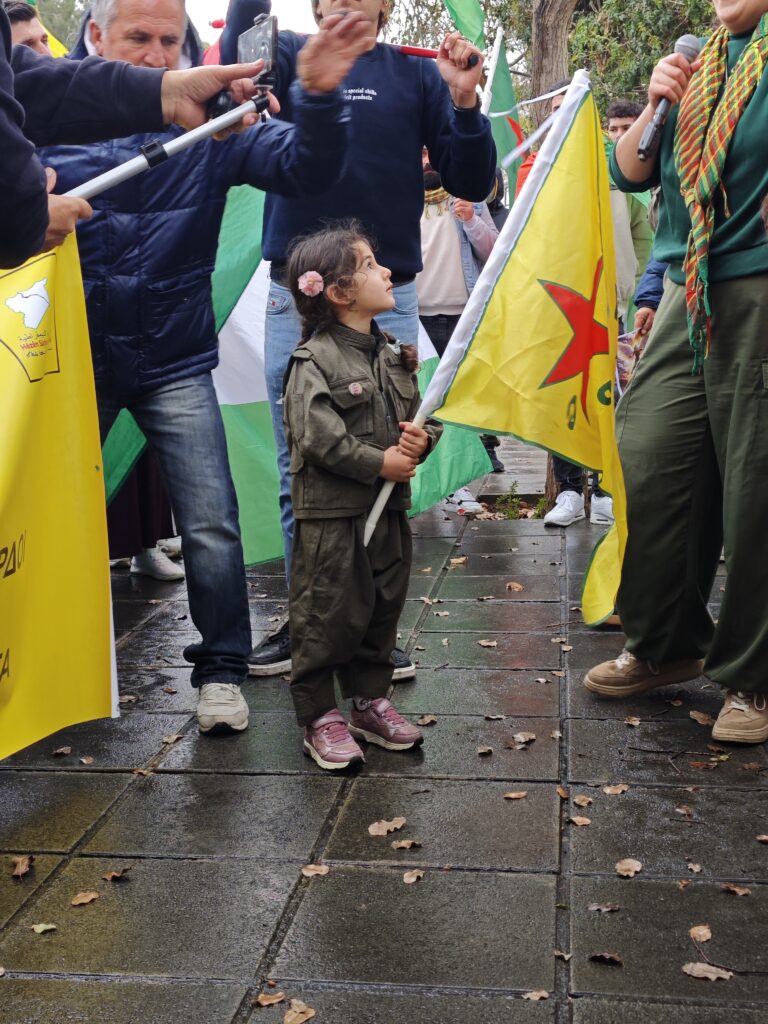 «Ο κόσμος έχει ενωθεί κατά των Κούρδων», κατήγγειλε ο Τουντζέρ Μπακιρχάν. «Σήμερα, στεκόμαστε στο πλευρό του λαού της Ροτζάβα που αγωνίζεται για την τιμή, την ταυτότητα και τη γλώσσα του, στο πλευρό των Κούρδων αδελφών μας». «Η Ροτζάβα είναι αντίσταση, είναι ελπίδα. Δεν θα επιτρέψουμε αυτή η ελπίδα να καταστραφεί», είπε. «Εκκαθαρίζετε τη Ροτζάβα από τους Κούρδους αυτή τη στιγμή;» ρώτησε η συμπρόεδρος του DEM Τουλάι Χατιμογκιουλάρι.