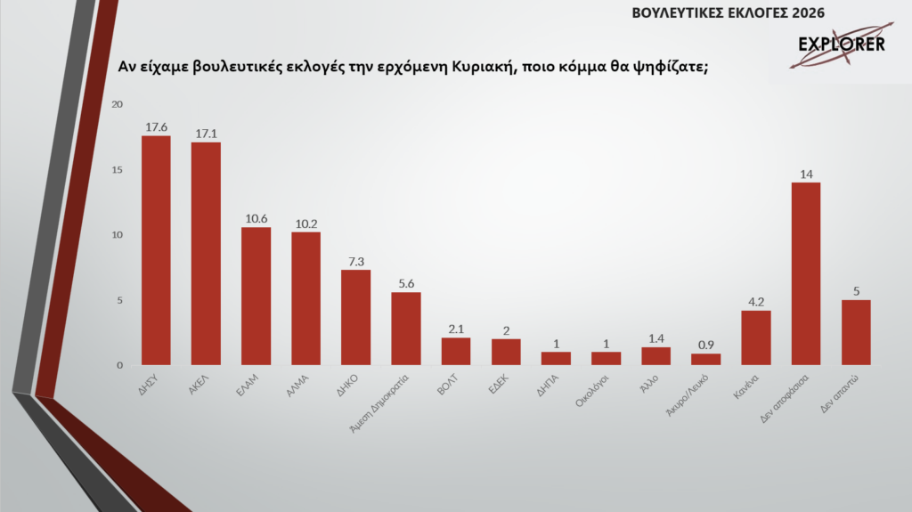 Συνεπώς, με βάση τα ευρήματα της δημοσκόπησης της EXPLORER, στη νέα Βουλή ενδέχεται να εκπροσωπηθούν έξι ή και περισσότερα κόμματα, χωρίς ξεκάθαρες πλειοψηφίες. Τα δύο μεγάλα κόμματα εμφανίζονται αποδυναμωμένα σε ποσοστά και έδρες, ενώ ΕΛΑΜ και ΑΛΜΑ επιχειρούν να ενισχύσουν τη θέση τους στο νέο πολιτικό σκηνικό. Το ΔΗΚΟ δίνει μάχη για να διατηρήσει μέρος του ρυθμιστικού του ρόλου, ενώ η Άμεση Δημοκρατία παραμένει απρόβλεπτη παράμετρος.