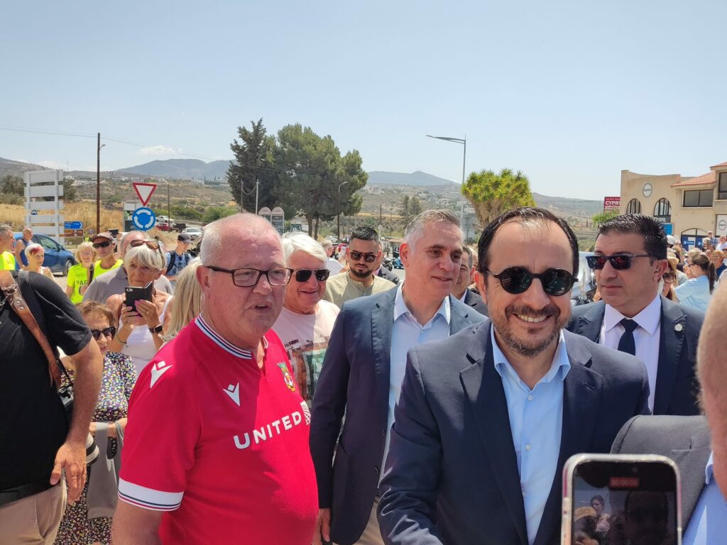Δεκάδες ήταν οι ξένοι επισκέπτες που προσέγγιζαν τον Πρόεδρο είτε για να ζητήσουν μια σέλφι μαζί του, είτε για να συνομιλήσουν. Πρόσχαρος και άνετος ο Νίκος Χριστοδουλίδης δεν αρνήθηκε κανένα αίτημα, ενώ ιδιαίτερα έδειχνε να ευχαριστιέται την προσέγγιση μικρών παιδιών, ρωτώντας τα από τα ονόματα τους, μέχρι τις περιοχές καταγωγής τους στο Ηνωμένο Βασίλειο. Δεν έχασε δε την ευκαιρία να σχολιάσει και ποδοσφαιρικά ζητήματα, στη θέμα κάποιων βρετανών με φανέλες ομάδων.