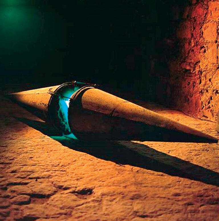 Γύρω μας ράφια με σφαίρες, κύβους, κώνους και άλλες γεωμετρικές φόρμες, στοιχεία τα οποία σκοπεύει να ενσωματώσει στο μέλλον σε κάποια από τα γλυπτά του. Δίπλα, σε μεγάλους πάγκους, τα προσχέδια και οι μελέτες του, πιο πέρα διάφορα άλλα υλικά. Ανάμεσα σ’ όλα αυτά ξεχωρίζουν ορισμένα από τα εβληματικά έργα του, όπως οι εγκαταστάσεις που παρουσίασε στο Λούβρο.