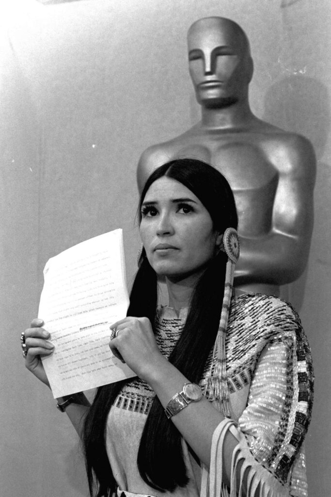 Οι άλλοι, οι παλαιάς κοπής επαναστάτες, θα θυμηθούν νοσταλγικά την όμορφη Σαχίν Λίτλφεδερ να αναγιγνώσκει μήνυμα εκ μέρους του βραβευθέντος Μάρλον Μπράντο, καταδικάζοντας τη συμπεριφορά της βιομηχανίας θεάματος απέναντι στους Ινδιάνους. Ήταν το 1973, έτος «Godfather» αλλά και πολέμου. Η Αμερική μετρούσε τις βιετναμέζικες πληγές της ενώ το Χόλυγουντ παρακολουθούσε βουβό και αμήχανο.