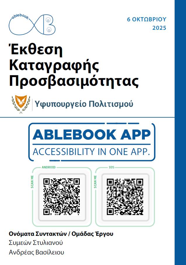 Ολοκληρώθηκε η πιλοτική μελέτη προσβασιμότητας σε 15 πολιτιστικούς χώρους αρμοδιότητας του Υφυπουργείου Πολιτισμού, που υπάγονται στο Τμήμα Αρχαιοτήτων Κύπρου και το Τμήμα Σύγχρονου Πολιτισμού Κύπρου, σε συνεργασία με την AbleBook.