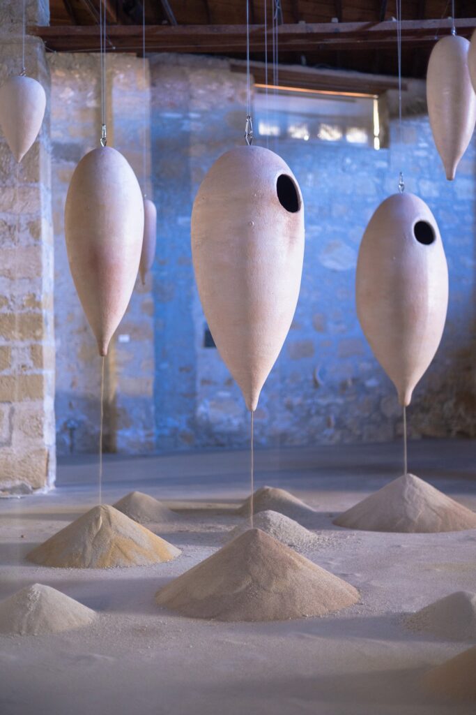 Αυτές οι κομψές, βιομορφικές μορφές ενέπνευσαν τα αιωρούμενα δοχεία καθένα από τα οποία περιέχει τοπική άμμο και χρωστική ύλη που απελευθερώνεται αργά με την πάροδο του χρόνου. Η κυπριακή εκδοχή αναφέρεται στο τοπικό είδος σφήκας λάσπης Sceliphron spirifex που δημιουργεί με παρόμοιο τρόπο δομές από λάσπη πάνω σε επιφάνειες κατασκευασμένες από τον άνθρωπο.