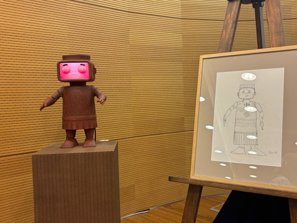 Το κεφάλι του διαθέτει οθόνη που προβάλλει ανθρώπινες εκφράσεις – χαμόγελο, περιέργεια ή απορία – επιτρέποντας μια φυσική και άμεση αλληλεπίδραση με τον επισκέπτη και προσφέροντας μια προσωπική εμπειρία μάθησης και επικοινωνίας.