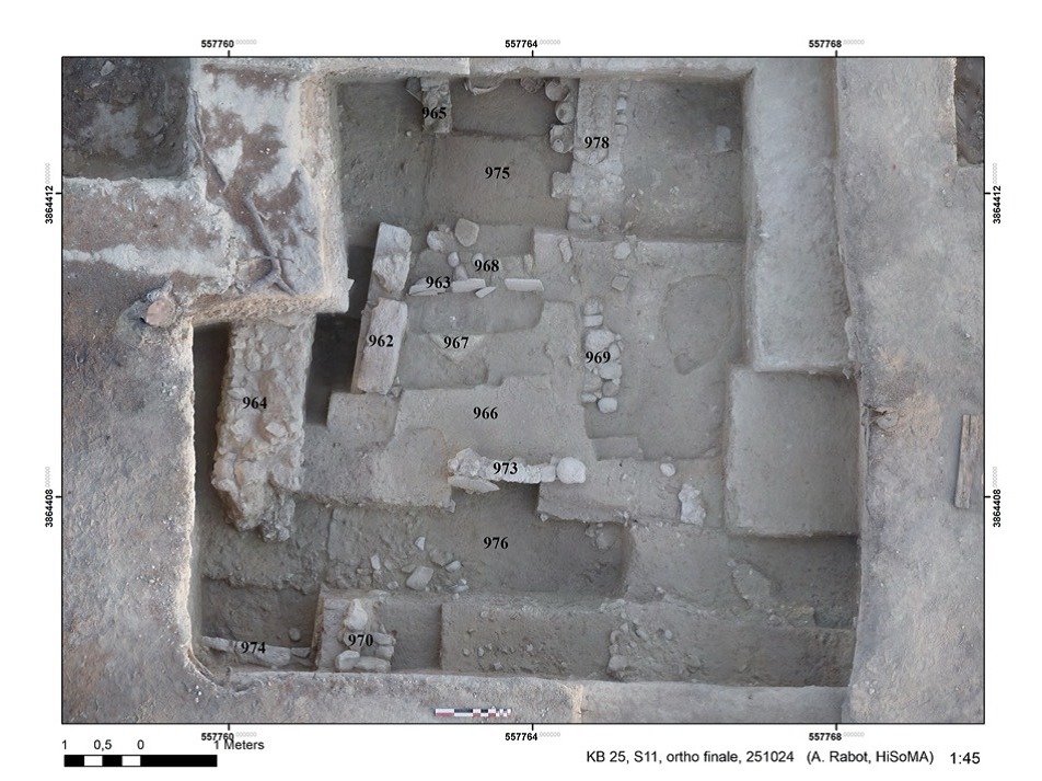 Στα βόρεια του λάκκου 975 αποκαλύφθηκε ένας χώρος του οποίου τα ανατολικά και βόρεια όρια ορίζονται από λίθινους τοίχους με ανωδομή από ωμοπλίνθους. Εξαιρετική είναι η διατήρηση του τοίχου 978, ο οποίος φέρει ακόμη λευκό επίχρισμα στη δυτική του όψη.