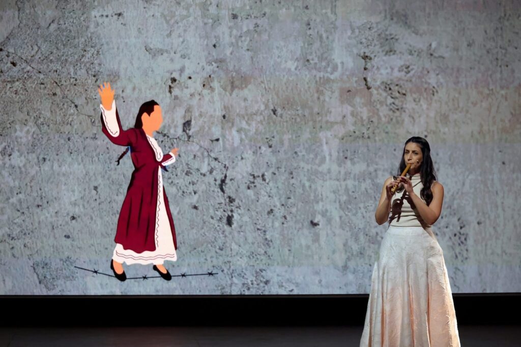Κεντρική φιγούρα της παράστασης αναδείχθηκε η 12χρονη Ιόλη Αντωνιάδου, που με φυσικότητα και ωριμότητα κινήθηκε και τραγούδησε στη σκηνή, ενσαρκώνοντας με τρόπο άμεσο το «βλέμμα προς το μέλλον» της δραματουργίας.