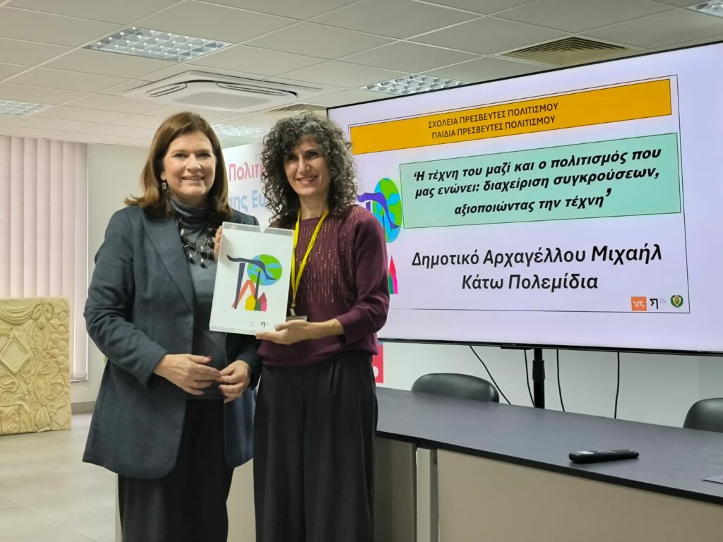 Με μια πολυθεματική εκπαιδευτική ημερίδα που ανέδειξε τη σύνδεση της τέχνης, της λογοτεχνίας και της ιστορικής μνήμης με τη σχολική καθημερινότητα, το Υφυπουργείο Πολιτισμού σηματοδότησε τη νέα, διευρυμένη φάση του προγράμματος «Σχολεία Πρεσβευτές Πολιτισμού – Παιδιά Πρεσβευτές Πολιτισμού» και καλωσόρισε τα 16 νέα σχολεία από όλη την Κύπρο που εντάχθηκαν σ’ αυτό.