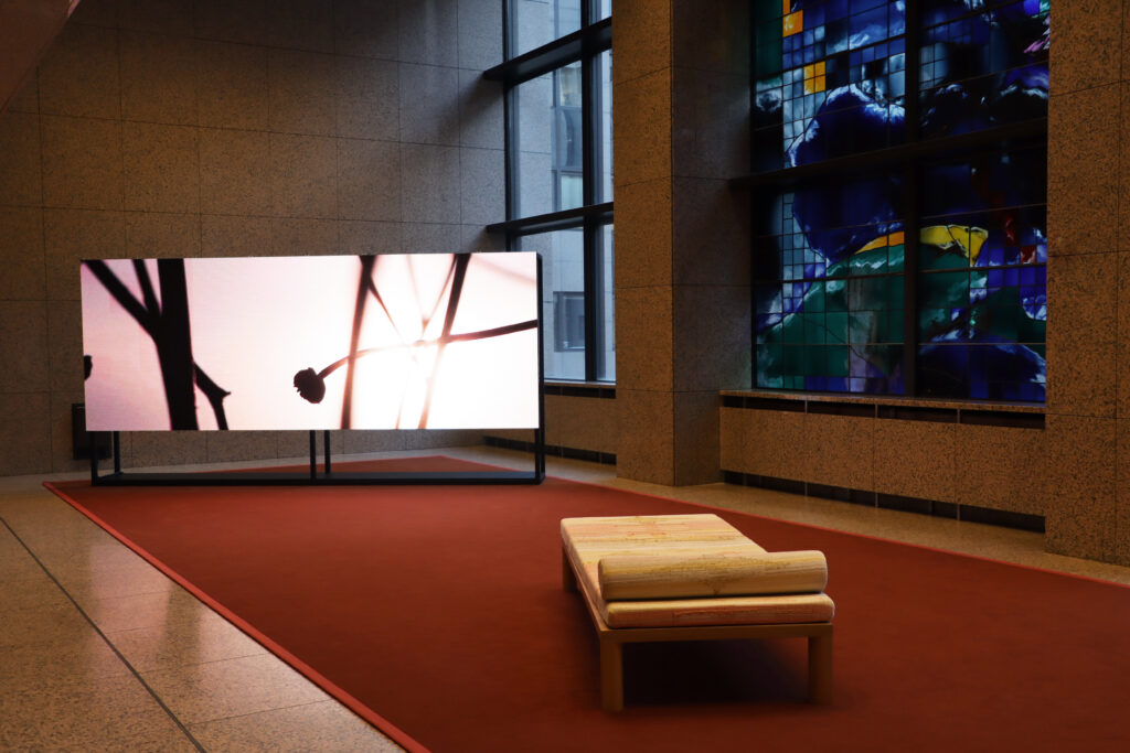 -Ποιο είναι το θέμα της έκθεσης; Πώς συνδέεται με την Κύπρο και την Ευρώπη; Μια κύρια θεματική που μας απασχόλησε είναι ο «Καιρός» σε ένα αφηρημένο πλαίσιο. Οι εγκαταστάσεις διαμορφώνουν ένα κλίμα πάντα σε διάλογο με τις μετεωρολογικές συνθήκες των Βρυξελλών: Τα σύννεφα, την υγρασία, το φως που μεταβάλλεται καθώς φιλτράρεται μέσα από τη γυάλινη οροφή του κτηρίου Justus Lipsius. Με αυτόν τον τρόπο, ο χώρος γίνεται γέφυρα όχι μόνο μεταξύ νησιού και ηπείρου, αλλά και μεταξύ τμημάτων της ατμόσφαιρας — αντανακλώντας την πορώδη φύση του ίδιου του ευρωπαϊκού εγχειρήματος, στο οποίο η Κύπρος συμμετέχει μέσω της γεωγραφίας, της ιστορίας και της φαντασίας. Σε αυτόν τον χώρο, ο καιρός των Βρυξελλών συναντά τον καιρό της Κύπρου, και η προεδρία μπαίνει σε διάλογο με το ευρύτερο ευρωπαϊκό τοπίο στο οποίο εντάσσεται. Μαζί με τους Κύπριους καλλιτέχνες δημιουργήσαμε στιγμές ηρεμίας και κίνησης σε όλο το κτήριο – πύλες προς την Κύπρο που διαμορφώνονται από την ευαισθησία του κλίματός της, υλικού και άυλου, και μεταφέρονται σε διάλογο με τις μεταβαλλόμενες ατμόσφαιρες της ίδιας της Ευρώπης.