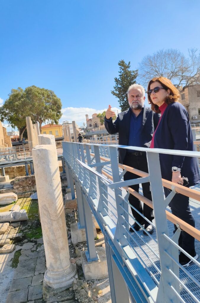 Η Υφυπουργός επισκέφθηκε τον αρχαιολογικό χώρο της Αγίας Κυριακής και της Στήλης του Αποστόλου Παύλου προκειμένου να επιθεωρήσει τον χώρο μετά την ολοκλήρωση των έργων ανάπλασης και αναβάθμισης της ευρύτερης περιοχής.