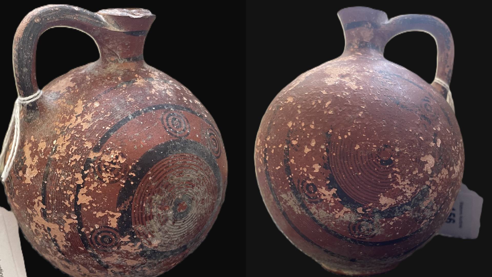Πρόκειται για Πρόχους του τύπου Μελανού επί Ερυθρού ΙΙΙ (ΙV) της Κυπρο-Αρχαϊκής Ι περιόδου (750 – 600 π.Χ.) με σφαιρικό σώμα, κοντό κυλινδρικό λαιμό, ελαφρώς υπερυψωμένη κάθετη λαβή από τον λαιμό στον ώμο και διακόσμηση μαύρου χρώματος σε κοκκινωπό στιλπνό φόντο που αποτελείται από ομάδες ομόκεντρων κύκλων σε κάθε πλευρά και ταινίες γύρω από τον λαιμό. Το χείλος δεν σώζεται.