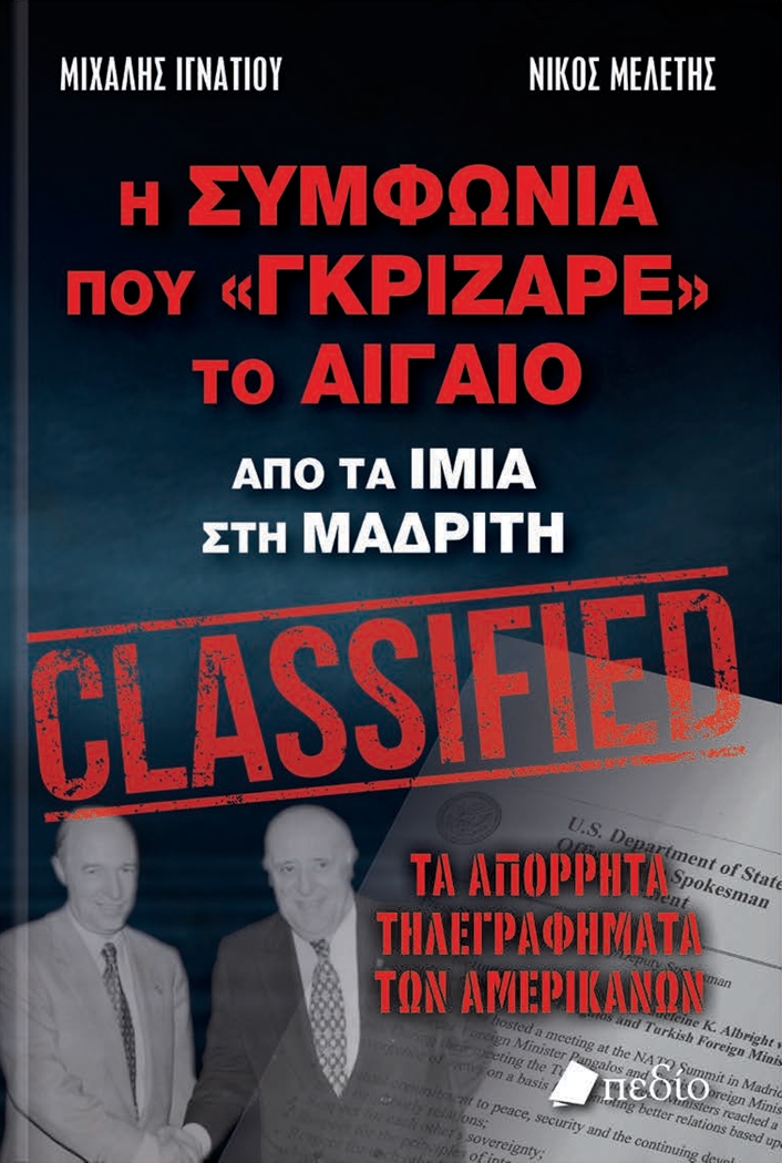 Το βιβλίο των Μιχάλη Ιγνατίου και Νίκου Μελέτη «Η συμφωνία που 'γκρίζαρε' το Αιγαίο: από τα Ίμια στη Μαδρίτη» παρουσιάζεται τη ∆ευτέρα 7 Νοεµβρίου στις 6.30μ.μ. στη ∆ηµοσιογραφική...