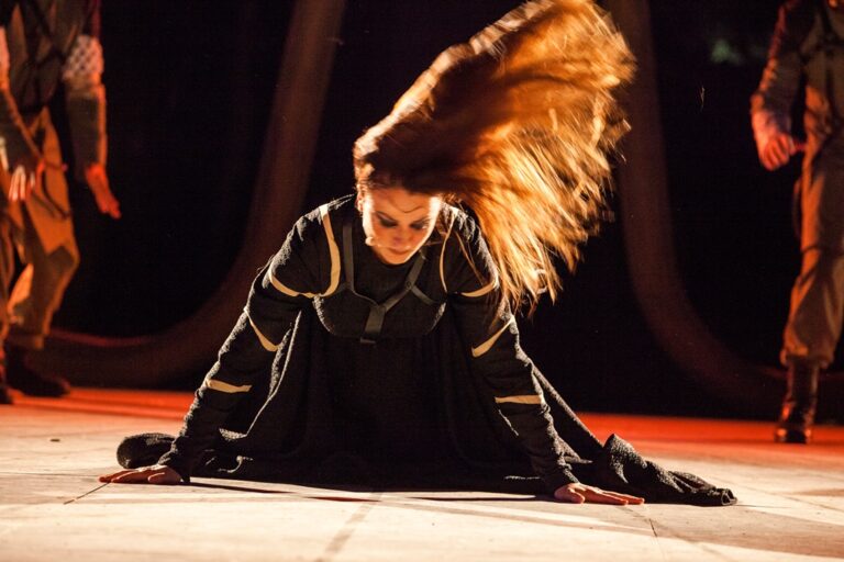 Η Καρυοφυλλιά Καραμπέτη έκανε επίδειξη επαγγελματικής αφοσίωσης σε κάθε γραμμή της παράστασης, αλλά και σωματικών ικανοτήτων, κατά την επίκληση του φαντάσματος του Δαρείου και στη συνομιλία με τον πεθαμένο βασιλιά. Ήταν πραγματικά μια σκηνή ανθολογίας, όταν έθεσε εαυτόν σε μια διαδικασία εκμηδένισης φτάνοντας να στριφογυρνά σαν μεβλεβί ασκήτρια για πάνω από δέκα λεπτά, χωρίς να χάσει ούτε χιλιοστό του βηματισμού της. Κι όλο αυτά καθώς στην παράσταση εφαρμόζονταν τέλεια, μεταξύ αντιφωνιών και επωδών, μια σειρά από στοιχεία τελετουργικής μυσταγωγίας και ιεροπρέπειας.