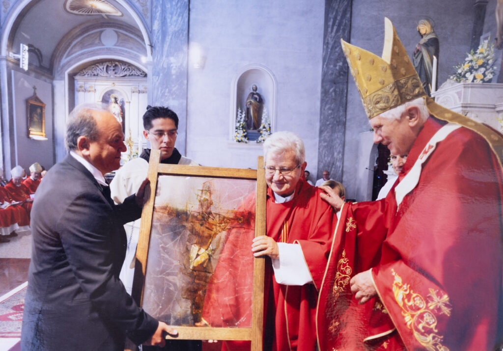 Η φήμη του Σταύρου Κοφτερού έφτασε ως το Βατικανό. Όπως μας αφηγείται ο ίδιος, στη διάρκεια της επίσκεψής του στην Κύπρο το 2010 , ο πάπας Βενέδικτος φιλοξενήθηκε στο μοναστήρι των Φραγκισκανών, κοντά στην Πύλη Πάφου. Σ’ αυτό το μοναστήρι ο κ. Κοφτερός είχε αποκαταστήσει ένα μεγάλο βιτρό που είχε τρυπηθεί από σφαίρες στη διάρκεια της Τουρκικής Εισβολής. Ο καθολικός αρχιεπίσκοπος της Ιερουσαλήμ, που ήρθε στην Κύπρο με την ευκαιρία της επίσκεψης του πάπα, ενδιαφέρθηκε να μάθει για τον δημιουργό που αποκατέστησε το βιτρό. «Μια μέρα ήρθαν στον εργαστήριό μου 20 καθολικοί επίσκοποι. Τους τράβηξε την προσοχή ένας εσταυρωμένος από χυτό γυαλί, που δημιούργησα για μια έκθεση. Έτσι, λοιπόν, αποφάσισαν να τον δωρίσουν στον πάπα, εκ μέρους των καθολικών της Κύπρου. Όταν του το είπαν, ο πάπας ζήτησε να του παραδώσω εγώ το έργο. Η εκδήλωση της παράδοσης έγινε στο μοναστήρι των Φραγκισκανών στη Λευκωσία. Όταν βγαίναμε από το μοναστήρι ο άπας μου κρατούσε το χέρι, και οι Βιετναμέζες και Ταϋλανδέζες που ήταν εκεί μου φώναζαν “είσαι ευλογημένος”. Αυτό το έργο βρίσκεται τώρα στο μουσείο του Βατικανού».