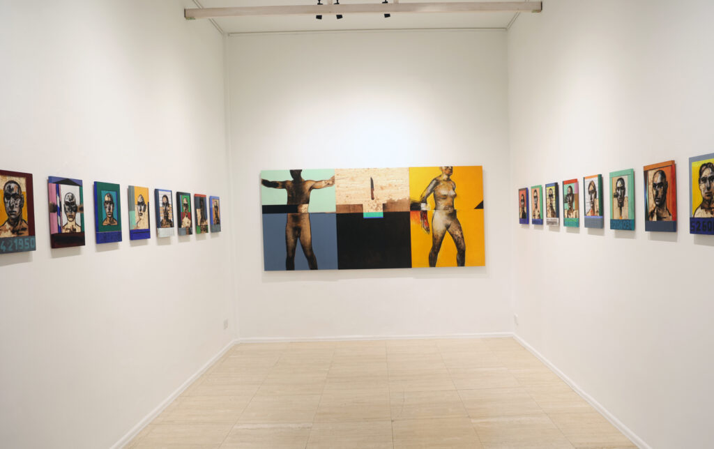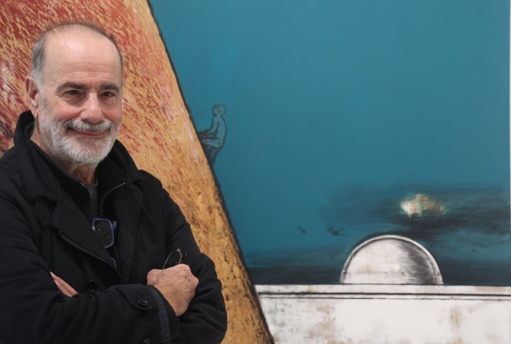 –Η έκθεσή σας έχει μια δυαδικότητα. Είναι σαν δύο εκθέσεις ουσιαστικά, σε μία; Ναι, μπαίνοντας στην γκαλερί, στα αριστερά σας θα δείτε όλα τα ανθρώπινα: τις μοναξιές, τους έρωτες, τις τρυφεράδες με την οικογένεια, με τα παιδιά, την αγωνία μας για το σπίτι μας, τη θάλασσα που μας ταξιδεύει ή που θέλουμε να μας ταξιδέψει. Στα δεξιά είναι τα έργα μιας ενότητας που βρίσκεται σε εξέλιξη και δεν ξέρω και αν θα τελειώσει ποτέ, γιατί το θέμα με το οποίο καταπιάνεται είναι σαν κατάρα που κατατρέχει την ανθρωπότητα χωρίς τέλος: είναι η βία του ανθρώπου προς τον άνθρωπο. Είναι ένα φαινόμενο που μας προστάζει διαρκώς να επαναπροσδιορίζουμε τις αξίες μας.