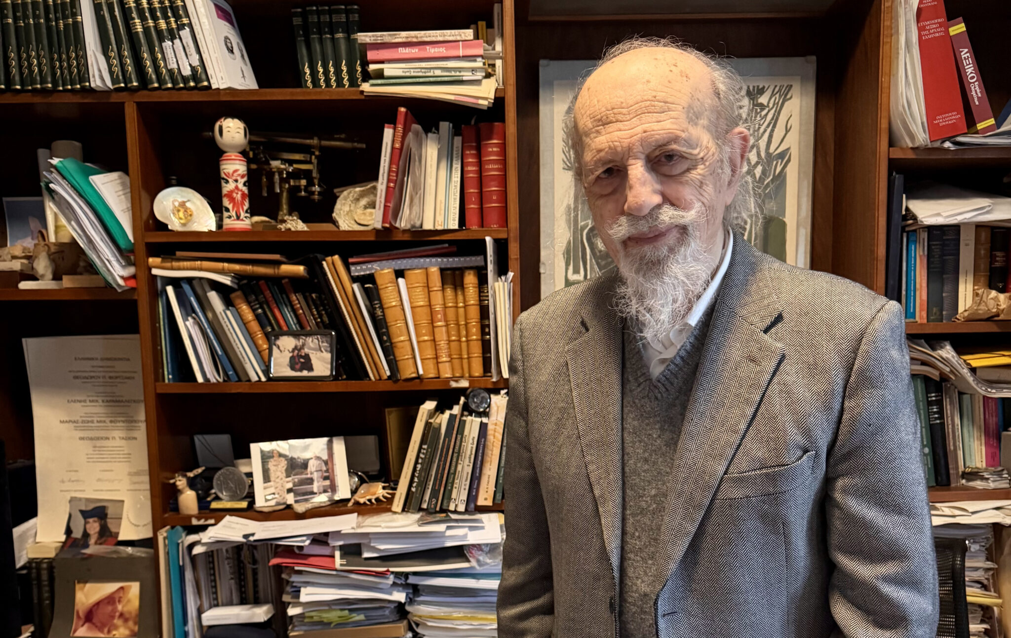 –Ζήσατε μία ευτυχισμένη ζωή, νομίζετε; Η λέξη «ευτυχία», κυριολεκτικώς, δεν ακριβολογεί, επειδή πρόκειται περί «τύχης». Επομένως, το ερώτημα θα έπρεπε να ήταν «αν είχα μια ευδαίμονα ζωή». Ακούστε, είχα πάρα πολλές δυσάρεστες εμπειρίες, όμως στο σύνολό της, και επειδή είχα αυτό το απρόσμενο δώρο της μακροβιότητας αλλά και το δώρο του να έχω μία γονική οικογένεια και μία οικογένεια γάμου και παιδιού καλή, ενώ είχα και δασκάλους εξαιρετικούς και επειδή -αν και είμαι απαισιόδοξος ως προς την πορεία της ελληνικής κοινωνίας- αυτή η κοινωνία μου έδωσε πράγματα, με έφερε εκεί που με έφερε -με μόρφωσε, με έθρεψε, με έζησε-, νιώθω μία ευγνωμοσύνη για όλα τούτα. Γι’ αυτό και συνεχίζω να πιστεύω ότι εγώ δεν έχω δώσει πίσω στην κοινωνία αυτά που «χρωστάω», αν και κάνω προσπάθειες να ενδιαφέρομαι για τα κοινά. Με αυτά τα δεδομένα, επομένως, θα μπορούσα να απαντήσω στο ερώτημα: «Σχεδόν, ναι».