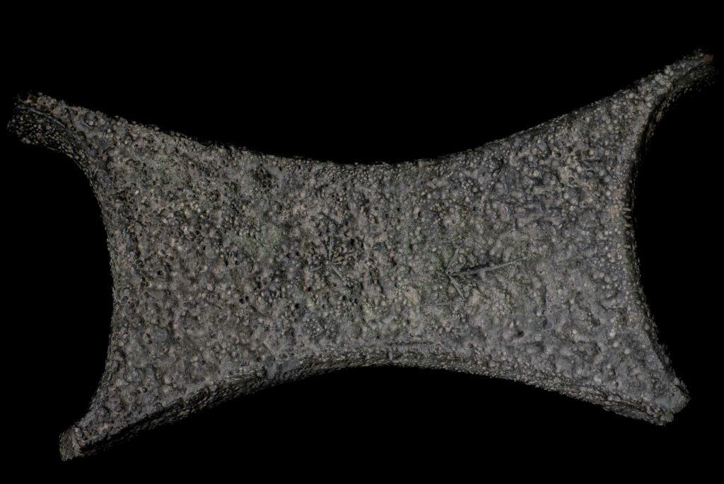 –Ποιο αντικείμενο θεωρείτε «κλειδί» για να καταλάβει ο επισκέπτης τη σχέση Κύπρου–Ιταλίας; Δύο πολύ διαφορετικά αντικείμενα αποτυπώνουν ιδανικά τη μοναδική σχέση ανάμεσα στην Κύπρο και την Ιταλία κατά την Αρχαιότητα. Το πρώτο είναι ένα εντυπωσιακό χάλκινο τάλαντο σε σχήμα τεντωμένου δέρματος βοδιού (ox-hide ingot) από την περιοχή Serra Ilixi στη Σαρδηνία, ένα σπάνιο εύρημα φτιαγμένο από κυπριακό χαλκό, που διένυσε πάνω από δύο χιλιάδες χιλιόμετρα από την Κύπρο στην Σαρδηνία. Το αντικείμενο αυτό, δάνειο από το Εθνικό Αρχαιολογικό Μουσείο του Κάλιαρι στη Σαρδηνία, στην έκθεσή μας, χρονολογείται περίπου στο 1500–1200 π.Χ., αναδεικνύει την έκταση του εμπορίου και της τεχνολογικής ανταλλαγής της Εποχής του Χαλκού, υπογραμμίζοντας τη διασύνδεση των μεσογειακών κοινωνιών και ιδιαίτερα της Κύπρου με την Ιταλία.