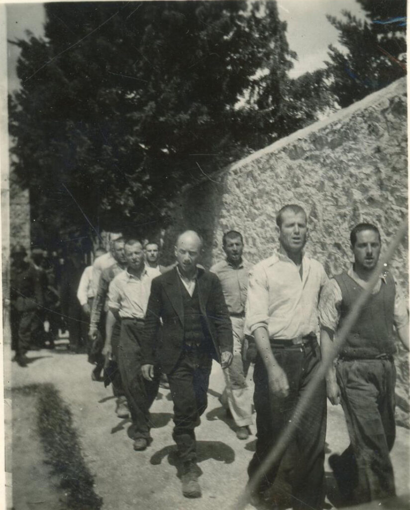 - Ένας Ιταλός βοηθητικός βρίσκεται στη φάλαγγα των οχημάτων κλειστών φορτηγών που μεταφέρει τους κρατούμενους από το στρατόπεδο Χαϊδαρίου στην Καισαριανή και το Σκοπευτήριο.