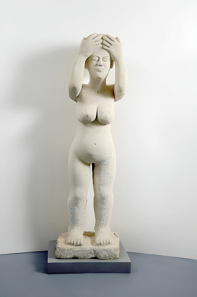 –Σε μια εποχή όπου η εικόνα καταναλώνεται μαζικά και η «ομορφιά» συχνά εμπορευματοποιείται, πώς μπορεί μια εικαστική έκθεση να επανανοηματοδοτήσει τον όρο; Τα συμφραζόμενα μιας εικαστικής έκθεσης αναφορικά στην έννοια του ‘ωραίου’ έχουν πολύ διαφορετική αντίληψη αντιμετώπισης της ομορφιάς, από εκείνη που αφορά εικόνες που εμπορευματοποιούν την ομορφιά. Εξάλλου μια έκθεση με έργα τέχνης που θέτουν διερωτήσεις για την ομορφιά λειτουργεί ως δοκίμιο σκέψης και μπορεί να γίνει αφορμή για υποψίες και ενδεχόμενους επαναπροσδιορισμούς ηθικής τάξης. Αναφέρω ενδεικτικά την “Αφροδίτη” του Κώστα Αργυρού, ένα λαϊκότροπο γλυπτό, απαλλαγμένο από το βάρος του ιδεώδους και τόσο σύγχρονο ως προς τα ζητήματα που εγείρει. Πρόκειται για μια άχαρη γυμνή και ρωμαλέα γυναικεία φιγούρα με τα χέρια στο κεφάλι. Η χειρονομία της μαρτυρά σάστισμα και αποστροφή απέναντι στο θεατό. Το έργο αποτελεί θα έλεγα τον πυρήνα της έκθεσης και την κύρια αφορμή για αναστοχασμό σε θέματα οικουμενικής αισθητικής.