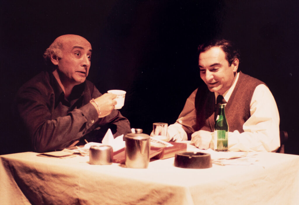 – Ως εμπειρότερος, αισθάνεσαι ότι σε βαραίνει μεγαλύτερη ευθύνη; Ο ηθοποιός είναι αιώνιος μαθητής. Εγώ μαθαίνω κι από τους νεαρούς που συνεργάζομαι, όπως καλή ώρα τώρα σ’ αυτή την παράσταση –κι ας μην τους γνώριζα τους περισσότερους. Το θέατρο ανατροφοδοτείται συνεχώς με φρέσκα μυαλά, διαφορετικές γνώσεις και δεξιότητες. Εμένα με πήρε από το χέρι ο Ανδρέας ο Μούστρας και για 15 χρόνια ήμασταν στο ίδιο καμαρίνι.