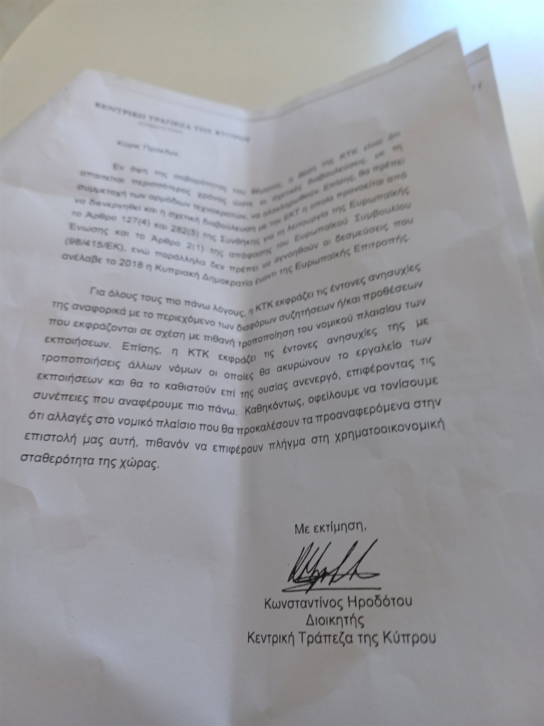 Σε προειδοποιήσεις για τα κεφάλαια των τραπεζών αλλά και στην χρηματοοικονομική σταθερότητα της χώρας, προχωρεί ο Διοικητής της Κεντρικής Τράπεζας Κωνσταντίνος Ηροδότου ο οποίος απέστειλε...